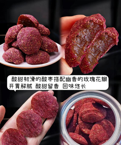 - 红枣蒸熟后与红糖混合,加入玫瑰水调成枣泥;
