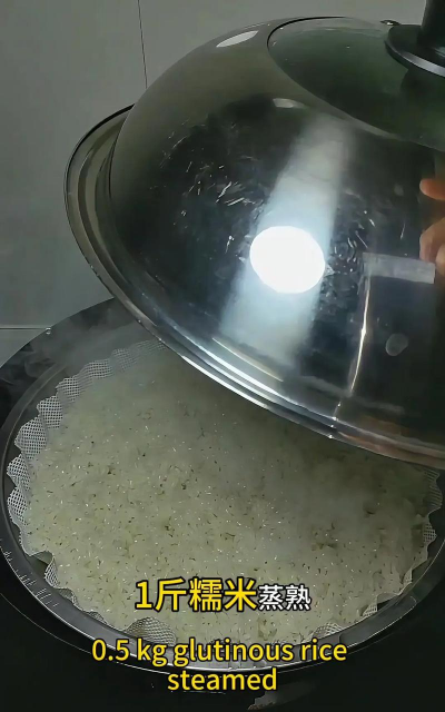 二、制作步骤# 1. 糯米预处理蒸煮: 将糯米洗净后浸泡2-3小时,然后蒸熟(约30分钟)。蒸后摊凉备用。 混合辅料
