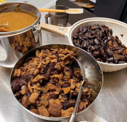 - 分次加入玉米油/花生油,翻炒至枣泥粘稠;