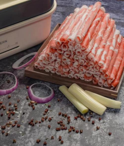 二、香菇冻豆腐羊肉卷(涮煮版)# 所需材料羊肉卷(建议选择冷冻羊肉卷)500克