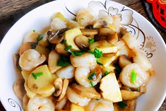 一、香菇冬笋炒虾仁# 所需材料主料: