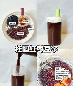 三、小贴士浸泡技巧: 豆类需充分浸泡以缩短煮制时间,避免糊锅 破壁机煮制时间不宜过长,防止豆浆过浓或溢出 若需降低甜度,可用红枣替代部分糖分 可加入燕麦片、苹果等增加膳食纤维和维生素