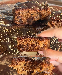 - 烤好后取出,倒扣晾凉,撒上芝麻装饰。