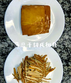 1. 卤豆腐干切成细丝。