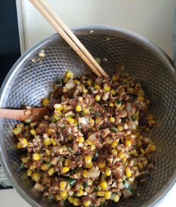:鲜香菇切丁后挤干水分,保留香味。蔬菜处理:胡萝卜、白菜等蔬菜切碎后挤干水分备用。