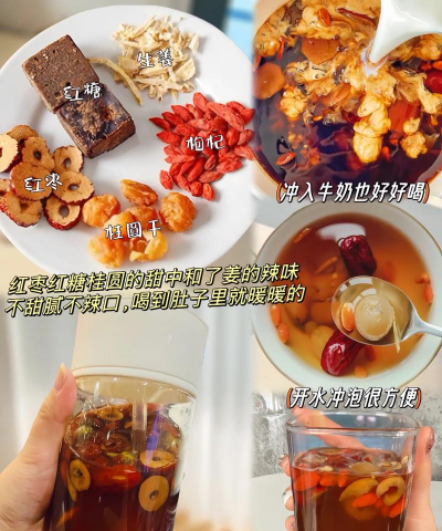 - 暖胃驱寒、补气血、安神助眠,适合冬季或疲劳时饮用。