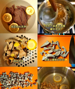 - 猪肝焯水后与姜片、柠檬水一起炒干;