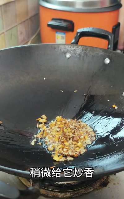 1. 炒香基底:热锅冷油,先煸炒蒜末至微黄,加入香菇丁翻炒至断生;
