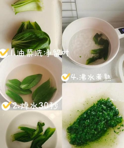 - 油菜处理:油菜洗净切段或碎末,快炒至断生保持脆嫩