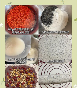 二、制作步骤# 1. 红豆沙馅制作煮豆沙:红豆提前浸泡一夜,连水煮至软烂(约需1.5小时),趁热压成泥备用。- 炒糖馅:另起锅,加入红糖/白糖与红豆泥翻炒至浓稠,可加入红枣碎增加风味。