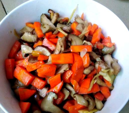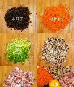 - 胡萝卜丁翻炒至断生后加入香菇丁;