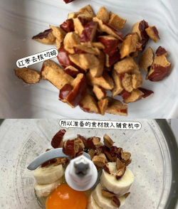 准备食材- 香蕉去皮切小块,与去核切碎的红枣混合备用。