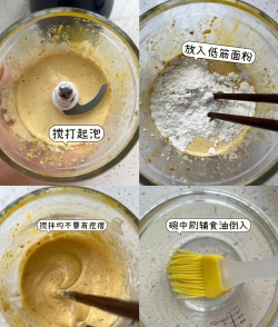 - 预热烤箱至180℃,模具刷油并铺油纸。