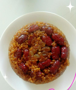 - 在蒸碗底部铺上一层红枣或葡萄干,再铺一层糯米,重复此步骤2-3次,最后铺上剩余的糯米;