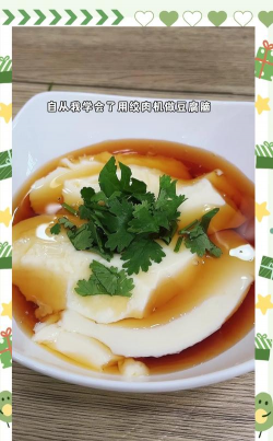 - 用纱布或豆腐模具过滤凝固的豆浆,装入容器压15分钟即可得到嫩豆腐;压1小时则成老豆腐。 - 可搭配辣椒油、韭菜花、葱花等调料食用。