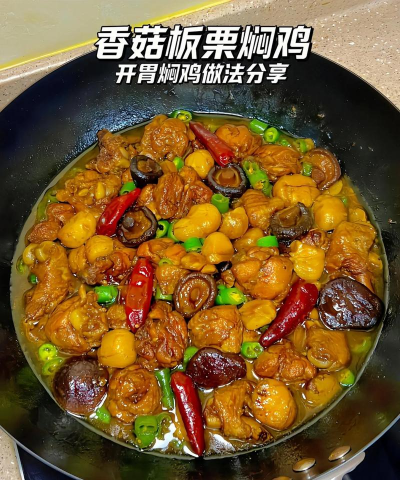 - 加入焯水后的鸡肉,大火翻炒至表面微黄,逼出多余水分。 - 倒入香菇和泡香菇的水(约1.5升),大火煮开后转小火炖煮40-50分钟,期间可翻动防止糊锅。4. 调味收汁