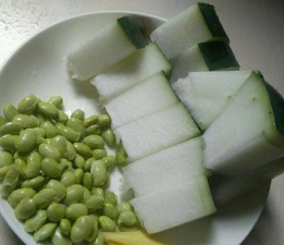 辅料:冬瓜500克、毛豆150克(鲜嫩毛豆需提前浸泡10分钟)