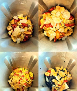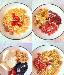 - 红枣、桂圆洗净去核,切碎备用。 - 黄豆提前浸泡30分钟,核桃去皮后捣碎或烤熟去苦涩(可用烤箱150℃烤5分钟)。2. 破壁机制作