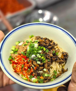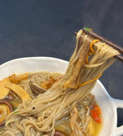- 将煮好的面条(可搭配碱面或普通面)盛入碗中,浇上炒好的豆干香菇酱,撒上葱花即可。