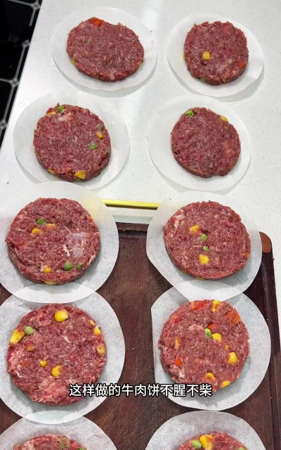 三、小贴士选材:选择牛里脊肉或牛腱子肉,肉质更嫩且易成型。2. 调味:腌制时间不宜过长,避免肉质变柴,建议5-10分钟。3. 形状:肉饼厚度建议0.5-1厘米,避免过厚导致外焦里生。4. 冷冻保存:剩余肉饼可冷冻保存,食用前直接煎熟。### 四、变体推荐