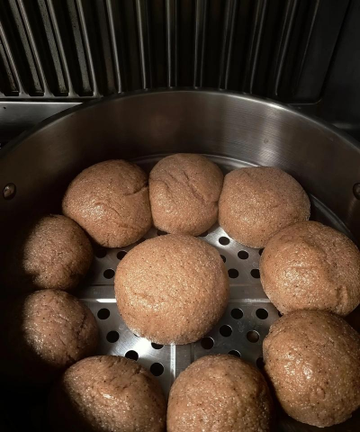 混合面糊:糯米粉、面粉、酵母粉、白糖混合,加入牛奶和植物油,边加边搅拌至无干粉。2. 发酵:面糊表面冒气泡后盖上保鲜膜,发酵1小时至体积膨胀。3. 包馅与蒸制:将红枣碎铺入面糊中,分成小份包制后蒸20-25分钟。4. 冷却与装饰:蒸后焖5分钟防止塌陷,淋上蜂蜜或糖桂花即可。