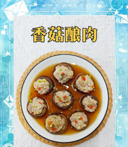 二、香菇酿肉 特点: 外酥里嫩,香菇吸收肉香,层次丰富。 主料