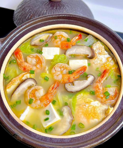 香菇砂锅大虾是一道营养丰富的家常菜,结合了虾的鲜嫩与香菇的浓郁风味。以下是两种经典做法供参考: