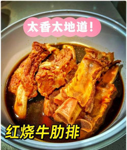 - 将牛排骨放入卤汁中,小火慢煮1-2小时,期间翻动确保均匀入味。