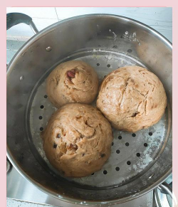 红糖枣泥馒头:蒸制后淋入红糖枣泥馅,二次发酵时加入少量温水,口感更甜润。