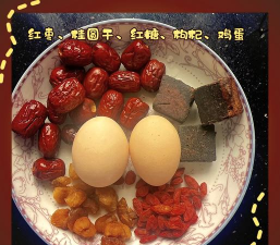 主料:鸭蛋2个、红枣6-10颗、桂圆8-10颗
