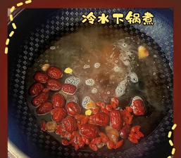 - 锅中留少许煮蛋水,加入红枣、桂圆和枸杞(可选百合),大火煮开后转小火炖煮10-15分钟,直至红枣软烂、桂圆饱满、汤汁呈棕红色
