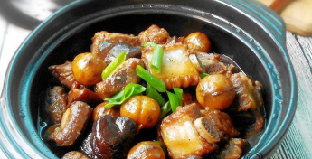 - 锅中加水烧开,放入排骨、板栗、香菇,转小火炖煮1小时。