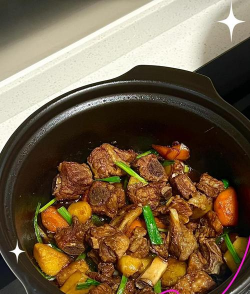 - 大火烧开后转小火慢炖1小时,期间可翻动几次,确保入味。