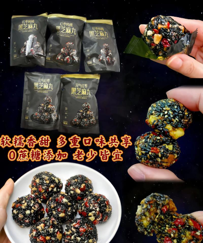 - 加入黑芝麻、核桃仁和红枣丁,快速翻炒均匀。3. 成型与包装