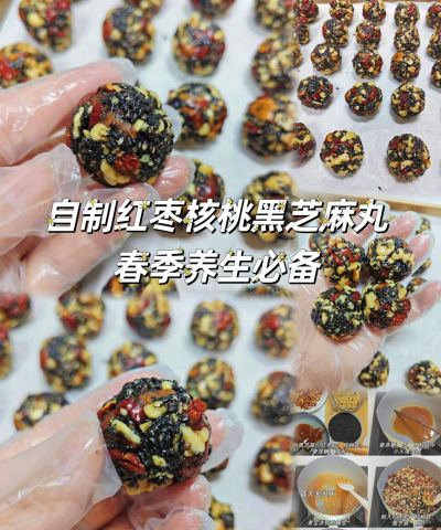 核桃红枣黑芝麻丸是一种营养丰富的养生食品,具有补脑益智、润肠通便等功效。以下是两种常见且实用的制作方法: