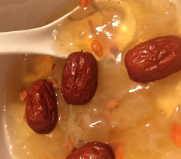 - 将桃胶、红枣、枸杞放入炖盅或锅中,加入没过材料的清水,水量建议比平时煮粥多20%-30%。