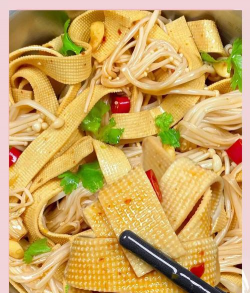 金针菇和豆腐皮都是营养丰富的食材,搭配起来味道鲜美。下面是一道简单又美味的金针菇炖豆腐皮的做法: