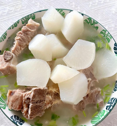 - 放入白萝卜块和红枣,继续炖煮20-30分钟,直到萝卜变软糯、入口即化。