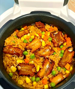 排骨焯水:冷水下锅加料酒焯水去油,捞出备用。2. 混合食材:糙米提前浸泡2小时,与焯水排骨混合,加入生抽、蚝油、黑胡椒粉调味。3. 焖煮:加开水煮至快熟时加入蔬菜丁,继续煮至蔬菜熟透。