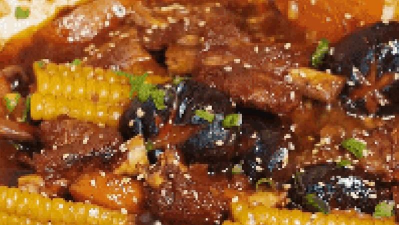 - 锅中留底油,加入姜片、葱段爆香,倒入玉米段、胡萝卜块翻炒均匀。 - 加入焯水排骨,倒入足量清水(没过食材),调入生抽、老抽、蚝油、冰糖,大火烧开后转中小火炖煮40分钟。