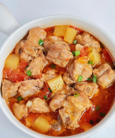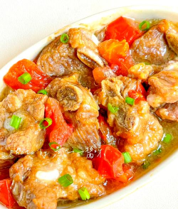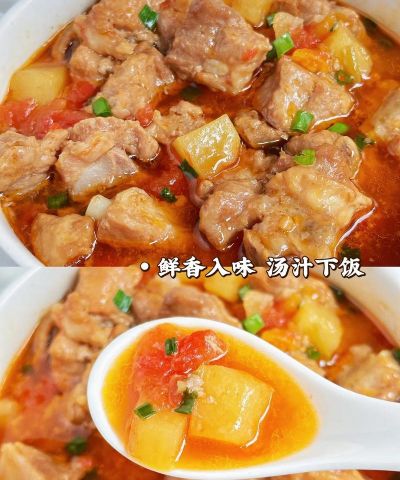排骨焯水:同经典做法。2. 炒香配料:热锅加油,爆香姜蒜,加入番茄翻炒至出汁。3. 加入配菜:放入玉米、胡萝卜块,翻炒均匀。4. 炖煮融合:加清水没过食材,小火炖煮40分钟,最后加盐调味。5. 收汁装盘:汤汁浓稠时开大火收汁,撒上葱花即可。