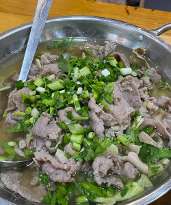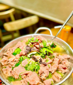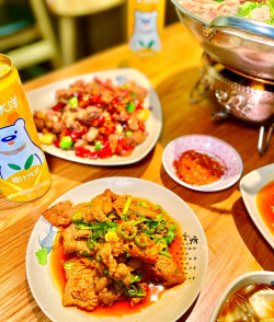 在火锅里涮牛肉时,可以根据个人口味和火锅类型(如麻辣、清汤、番茄、菌汤等)搭...