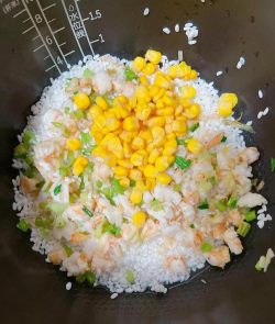 - 将大米淘洗干净后,加入炒好的食材和香菇水,搅拌均匀后转入电饭煲或砂锅焖煮。