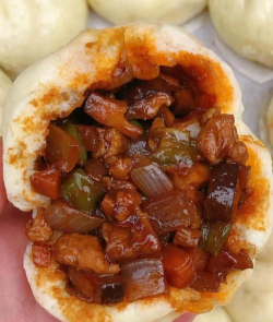 四、成品特点口感:面皮松软有蜂窝结构,馅料鲜香浓郁,酱香味突出。
