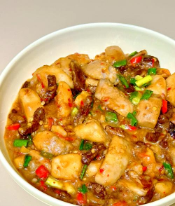 - 香菇泡发后切块,干香菇需提前用温水泡软并去蒂。