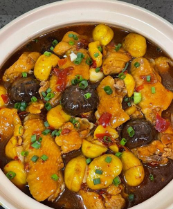 - 大火煮开后转小火炖煮40-60分钟,至鸡肉软烂、板栗入味。