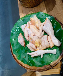 - 蘑菇类洗净后焯水备用;鸡骨架焯水后敲裂备用。