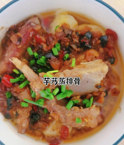 排骨预处理:排骨洗净焯水,冷水加姜片、料酒煮沸后撇去浮沫,捞出沥干后裹上一层淀粉。2. 芋艿处理:芋艿去皮切块,冷水浸泡防止氧化。3. 组合与蒸制:将排骨和芋艿块混合,加入生抽、料酒、盐调味,放入蒸锅中大火蒸40分钟(可用高压锅缩短时间)。4. 收汁装盘:蒸熟后取出,可根据喜好淋上蒸鱼豉油或红椒丝提色。