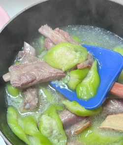 - 放入丝瓜块和淮山块,继续炖煮30分钟。3. 调味收汁