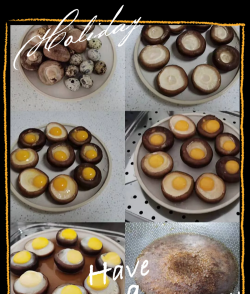二、香菇肉末蛋挞(荤素搭配版)# 所需材料主料: 香菇8-10朵、鹌鹑蛋6-8颗、瘦肉末100g 辅料